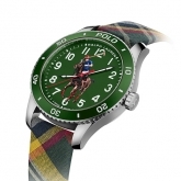 The collection is comprised of four models: a rich lacquered green dial in Ralph Lauren’s heritage hue, a classic lacquered navy dial, and two lacquered black dials that include a stainless steel trim for a more sophisticated expression and a sportier design with matte hardware for a modern appeal. From casual to elevated strap offerings, the collection is designed to be mixed and matched with either bracelets of timeless stainless steel, subtly textured leather straps with ecru stitching, cotton madras straps inspired by authentic woven shirtings, and a leather strap in three colorways printed with Ralph Lauren’s Polo Sport logo inspired by iconic `90s apparel collections. Additionally, there is a black sandblasted stainless steel option that pairs solely with the black lacquered dial and matte hardware to create the ultimate expression of modern sensibility.
