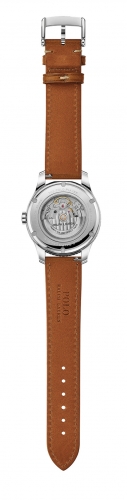 The stainless steel round cases measure 42mm by 12.35mm and include an exhibition case back to make fine details visible—including vertical Côtes de Genève stripes and circular graining, known as perlage. The timepieces are powered by an automatic, Swiss-made, caliber RL200 movement run at a frequency of 28,800 vibrations per hour and features 26 jewels with an approximate 38-hour power reserve.