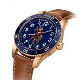 Water-resistant with a 38-hour power reserve, the brushed bronze case features an aluminum bezel available in deep blue or rich brown with a matching crown embellished with the Polo logo. Black-and-white, sword-shaped hands track hours and minute with a red hand track second. Encased by beautiful, curved sapphire crystal finished with an anti-reflective treatment, White Arabic numbers complete the face.