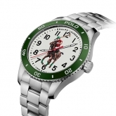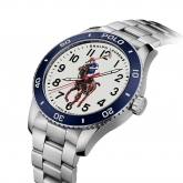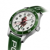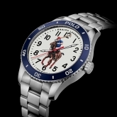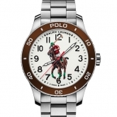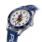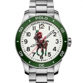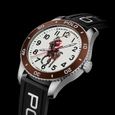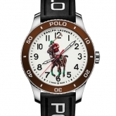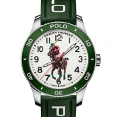 In 1972, Ralph Lauren’s signature emblem—capturing the penultimate moment before mallet meets ball during a polo game—took its place on the chest of the Polo shirt, where it became a symbol recognized around the world. Gracing the dial of the Polo Watch collection, the Polo Player is 3-D printed in multiple layers of rich color and complemented by luminescent-printed Arabic numbers on a lacquered dial and framed by an anodized aluminum ring on a stainless steel bezel.
