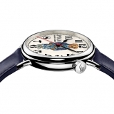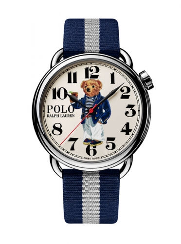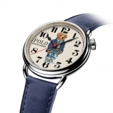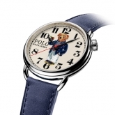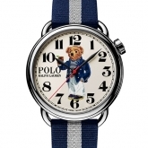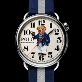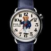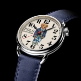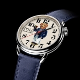 Both new Polo Bears are rendered in vivid 3-D print, the dial available in lacquered off-white with contrast Arabic numbers. Crafted in the elite tradition of Swiss horology, the 42 mm timepieces are powered by an RL200 caliber automatic Swiss movement, hand-finished with vertical Côtes de Genève stripes and circular graining, known as Perlage. Water-resistant with a 38-hour power reserve, the polished stainless-steel cases feature a matching crown embellished with the Pony logo. Both are encased in beautiful, curved sapphire crystal, finished with an anti-reflective treatment, and an open case back. A navy calf strap envelops the watches, and both offer the option of an interchangeable navy white blended silk.