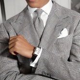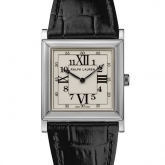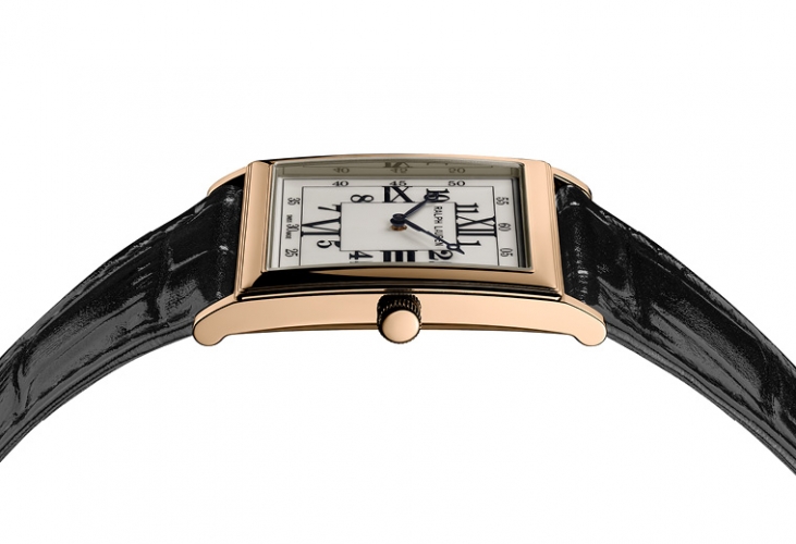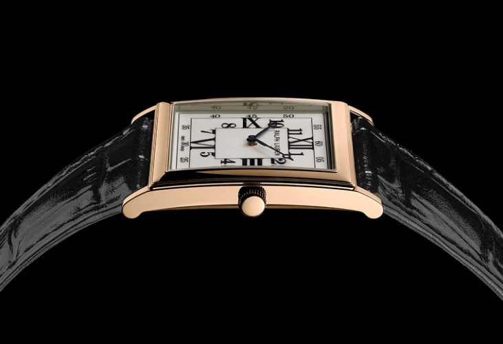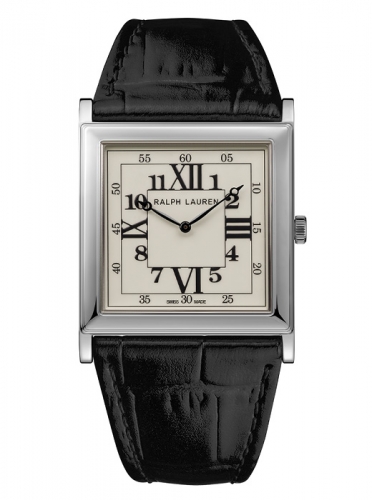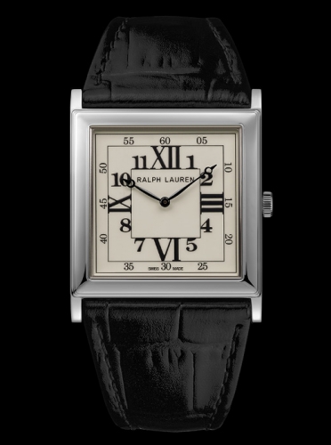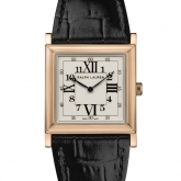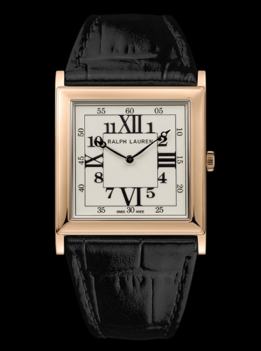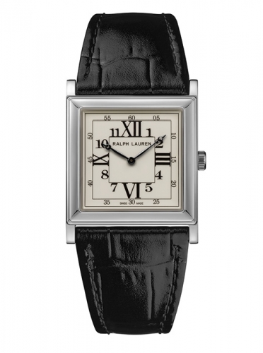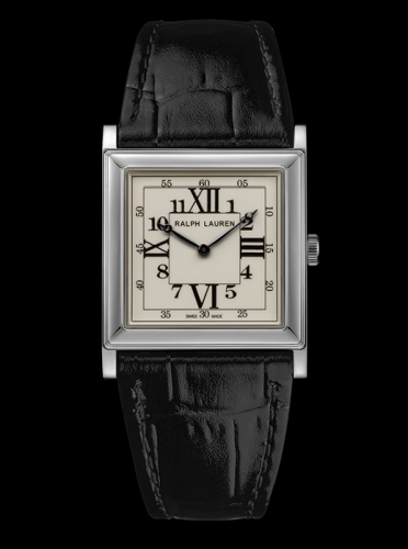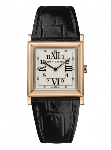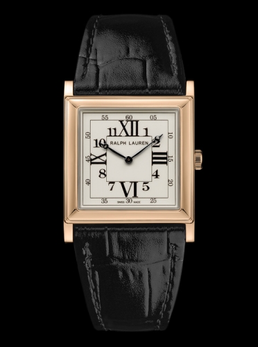 The signature square design of the Ralph Lauren 867 Collection combines the classicism of a pure and simple watch that displays only the essential information – the time- and the modernity of Art Deco style. The watch features classical proportions with symmetrical square cases of 28 mm and 32 mm in sterling silver or 18K rose gold, lacquered white dials comprised of concentric squares with Arabic and Roman numerals and sleek Breguet-style hands.