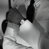 Crafted in the elite tradition of Swiss horology, the 28 mm and 32 mm 867 timepieces are powered by an “extra-flat” mechanical manual winding Swiss movement, hand finished with vertical Côtes de Genève stripes and circular graining, known as Perlage. The interchangeable shiny black alligator strap is hand-stitched using the best quality of skins to complete the sophisticated look of a Tuxedo cuff with a sterling silver or 18K rose gold pin buckle.