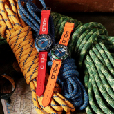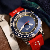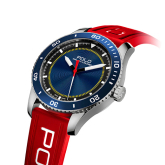 Each timepiece embraces the essence of sport using bold and colorful graphics that embody the powerful energy of a sporty lifestyle. The dial features an azure matte blue and black lacquered base adorned with white super luminova indexes, ensuring optimal readability in any lighting condition. Complementing the dial is an aluminum rotating bezel, adding a contemporary touch to the classic design while providing additional utility for outdoor and sports activities.