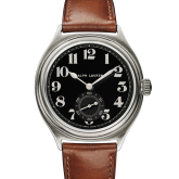 This new timepiece maintains the collection’s signature 40mm aged stainless steel case and distinctive onion crown, now paired with a dramatic black dial featuring bold Arabic numerals in contrasting white lacquer. The refined aesthetic is enhanced by an azured small seconds subdial at 6 o’clock, creating a perfect balance of vintage charm and modern sophistication.